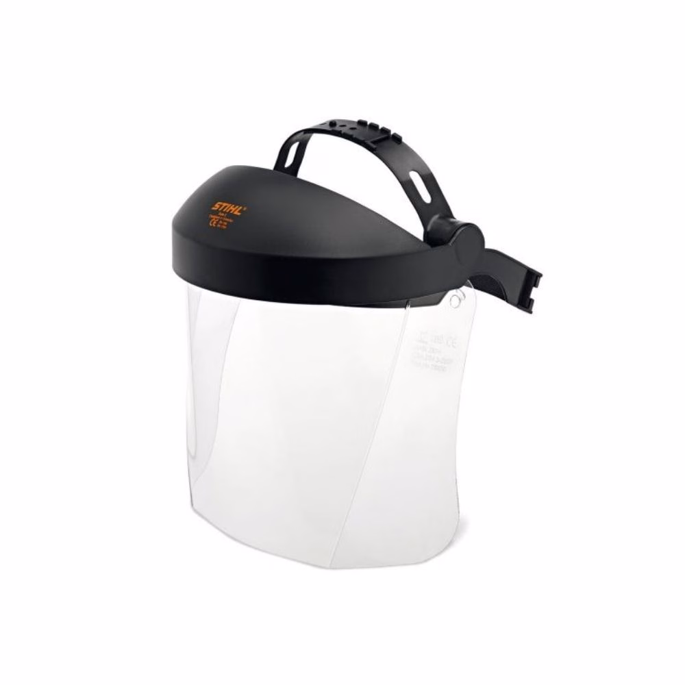 Пластичниот визир обезбедува заштита на лицето и нуди 100% UV заштита, што го прави идеален за работа при силна сончева светлина. При користење на моторни косилки, тримери, дувачки машини за лисја, прскалки или бензински секачи, задолжително е дополнително носење заштитни очила во согласност со стандардот EN 166.