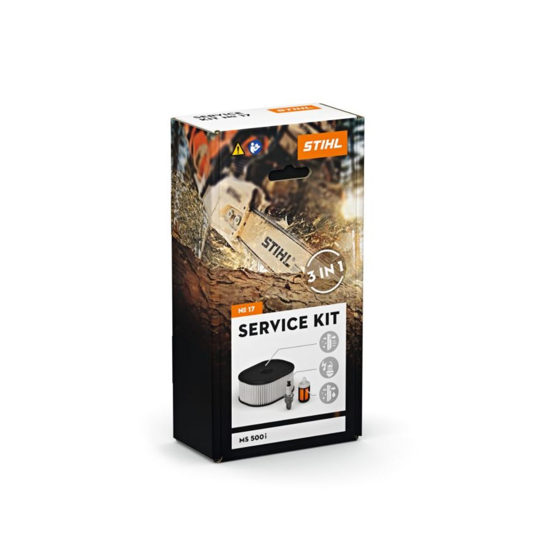 STIHL Сервисен Кит 17 е наменет за редовно одржување на бензинската моторна пила MS 500i. Комплетот ги содржи најважните сервисни делови: HD2 филтер за воздух, филтер за гориво и свеќица, кои овозможуваат сигурна работа и оптимални перформанси на моторот. Со редовна замена на овие компоненти се спречува навлегување нечистотии во моторот и се продолжува работниот век на машината.